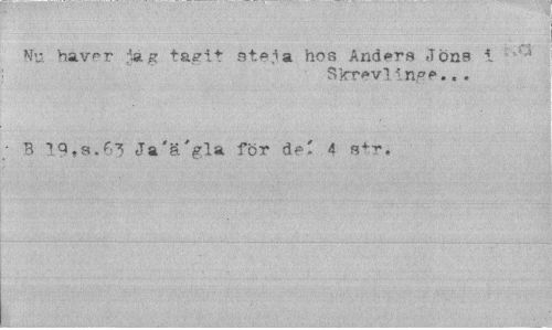 //// N" ha v fr 4«g t&eit steja hos Anders Jons i 1 //// Skrev! inpe.. . //// • B !9,s.6T Ja'ä'gla för de' 4 ////