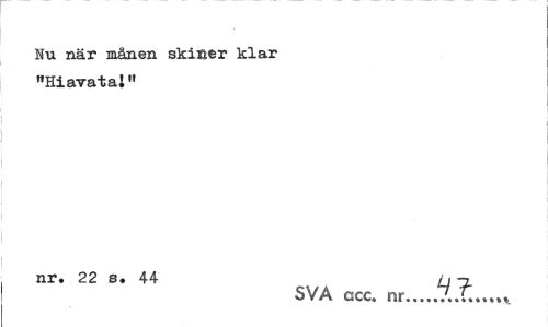 //// Nu när månen skimer klar "Hiavatai" //// nr. 22 s. 44 h -n //// SVA acc. nr...7.X...%», ////