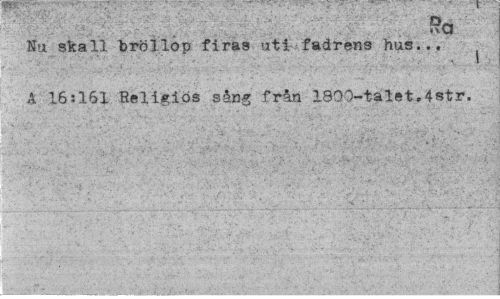 //// Nu skall bröllop firas uti fadrens hus.." //// ' — 'v ' ,'; . t | t //// A 16:161 Religiös sång från 1800-talet.4str. ////