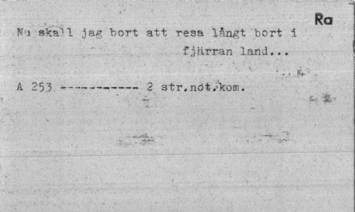 //// Ra //// Ni ska^l jag bort att resa långt bort 1 //// fjärran land... //// A 253---2 str.nöt.-kom. //// • c. ////