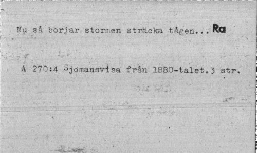 //// Ku så börjar stormen sträcka tåren... R« A 270:4 ömansvisa från 1880-talet.3 str. ////
