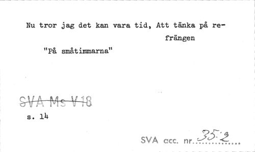 //// Nu tror jag det kan vara tid, Att tänka på refrängen //// "På småtimmarna" //// &V£"Mr-V4S //// s. lU //// SVA ccc. nr...?. I ////