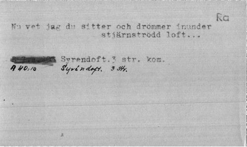 //// kc //// >T-i vet jag d" sitter och drömmer Inunder //// stjärnströdd loft.». //// 4S8MPHP® Syrendoft. ; str, kom. Q J/o, /o tfyrtx JfY. 3 Jfr. //// Jl ////