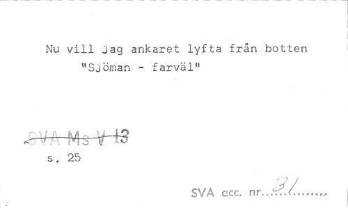 //// Nu vill jag ankaret lyfta från botten "Sjöman - farväl" //// s, 25 //// 7 / //// SVA ccc. nr...t...,, ////