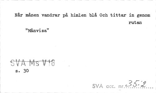 //// Når månen vandrar på himlen blå Och tittar in genom //// rutan //// "Månvisa" //// ttMA. //// s. 30 //// SVA ccc. nr ////