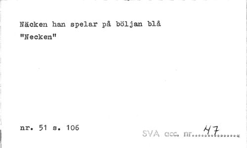 //// Näcken han spelar på böljan blå "Necken" //// nr. 51 s. 106 U "2 //// kJ> ./ A-i. Idz oooooooo a,a o a a ////