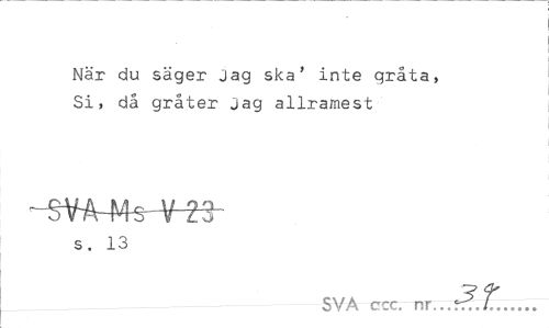 //// När du säger Jag ska' inte gråta, Si, då gråter jag allramest //// s, 13 //// SVA ccc. nr.../^... ////