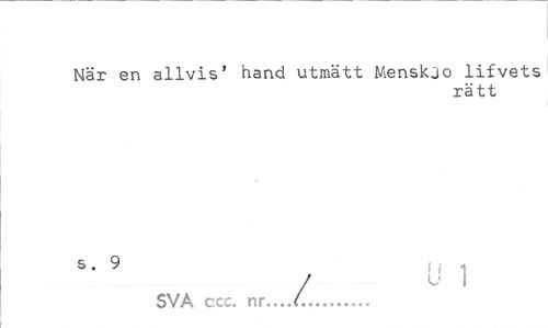 //// När en allvis' hand utmätt Mensklo lifvets //// rätt //// s. 9 //// / U i //// SVA ccc. nr...(... ////