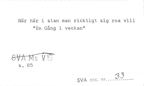//// När här i stan man ricktigt sig roa vill "En Gång i veckan" //// sftcnfr^ //// s. 85 //// 13 //// SVA ccc. nr...K... ////