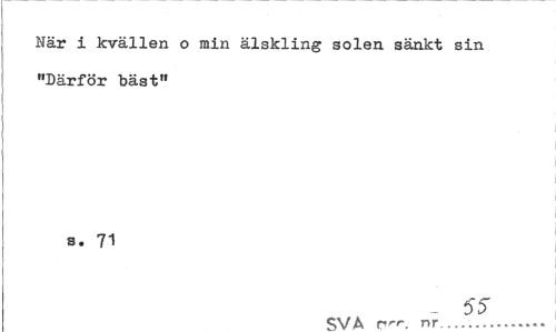 //// När i kvällen o min älskling solen sänkt sin "Därför bäst" //// s. 71 //// C\f K r*-~r nr ... ////