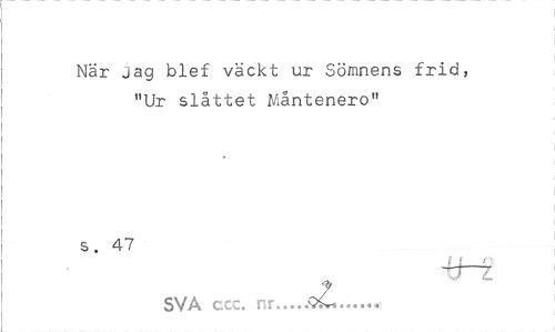 //// När Jag blef väckt ur Sömnens frid, "Ur slåttet Måntenero" //// s, 47 //// iri: //// SVA ccc. nr...9^.,..., ////