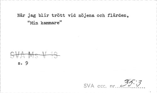 //// När jag "blir trött vid nöjena och flärden, "Min kammare" //// s. 9 //// SVA ccc. nr ////