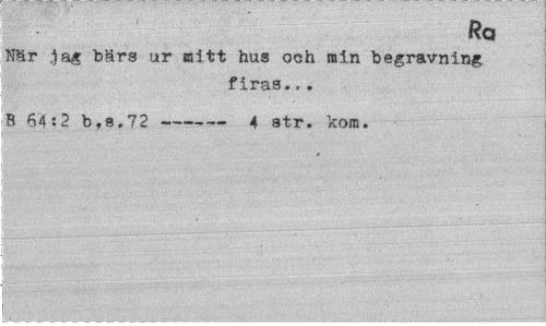 //// Ra //// När .jag bärs ur mitt hus och min begravning //// firas... //// B 64:2 b,s.72--- 4 str. kora. //// t ////