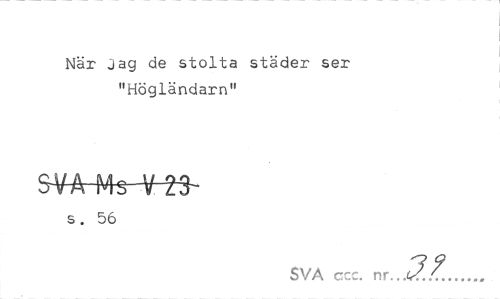 //// När Jag de stolta städer ser "Högländarn" //// S¥A Ms V 23- //// s. 56 //// SVÅ ccc. ... ////