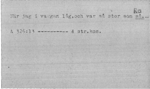 //// Ra //// "är jag i va-.-gan låg,och var så s.tor 'som. så... A 326:13 --- 4 str.kom. ////