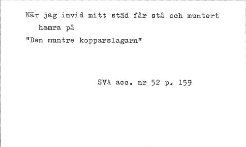 //// När jag invid mitt städ får stå och muntert //// hamra på "Den muntre kopparslagarn" //// SVA acc. nr 52 p. 159 ////