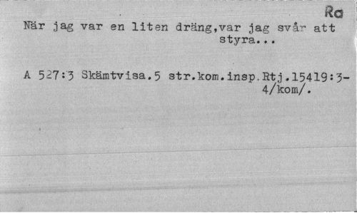 //// kq //// Får jag var en liten dräng,var jag svår att //// styra... //// A 527:3 Skämtvi3a.5 str.kom.insp.Rtj.15419J3- //// 4/kom/. ////