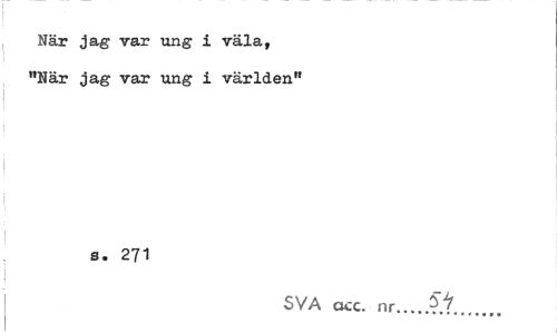//// När jag var ung i väl a, "När jag var ung i världenM //// i //// s. 271 //// SVA acc. nr... //// \ ... ////