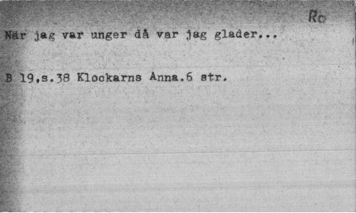 //// Rr //// När jag var unger då var jag gläder,., B 19.s,38 Klockarns Anna.6 str» ////