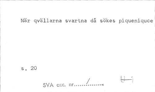 //// När qvällarna svartna då sökes piqueniquce s. 20 //// / 'y—i //// SVA ccc. nr.../...« ////