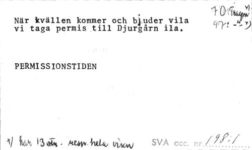 //// ^O-lAtUW //// När kvällen kommer och bjuder vila J1 y //// vi taga permis till Djurgårn ila. ¦ //// PERMISSIONSTIDEN //// V Wv - MUyv-htho Uiacmj SVA ccc . ///-/ ////