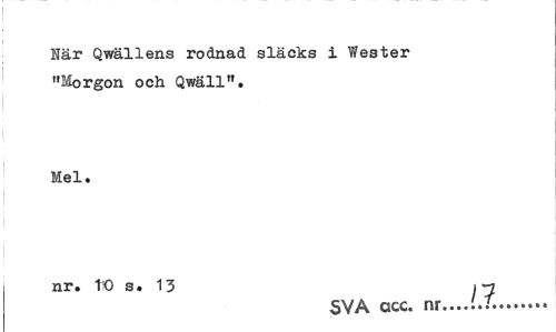 //// Kär Qwällens rodnad släcks i Wester "Morgon och Qwäll". //// Mel. //// nr. tlO s. 1 3 j //// SVA acc. nr...!'... ////