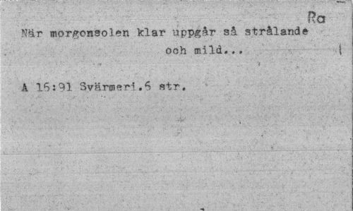 //// Ra //// När morgonsolen klar uppgår så strålande //// och mild... { //// A 16:91 Svärmeri.6 str. ////