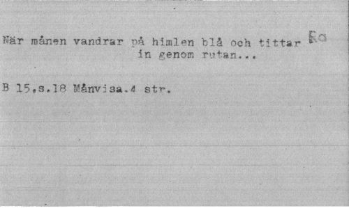 //// C <y //// När månen vandrar på himlen hlå och tittar 6 //// in genom rutan... //// B 15«s.18 Månvisa.4 str-. ////