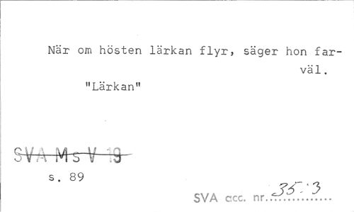 //// När om hösten lärkan flyr, säger hon farväl , //// "Lärkan" //// S. 89 //// SVA ccc. nr.?... ////