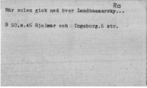 //// Rg //// När solen gick ned över Landharamarsky... B 60,8.46 Hjalmar och Ingeborg.6 str. ////