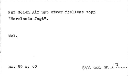 //// Här Solen går upp öfver fjeliens topp "Norrlands Jagt". //// Mel, //// nr, 55 s. 60 gyA GCC. nr... a... ////