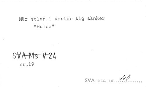 //// När solen i vester sig sänker "Hulda" //// SiWtelftt //// nr .19 //// SVA ccc. nr. ////
