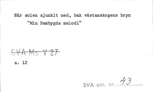 //// När solen sjunkit ned, bak västanskogens bryn "Min Hembygds melodi" //// s. 12 //// SVA ccc. nr.. X... ////