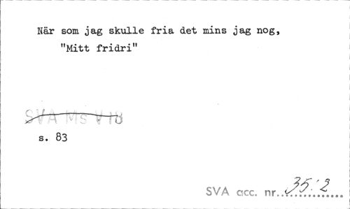 //// Kär som jag skulle fria det mins jag nog, "Mitt fridri" //// r ¦ r __ //// s. 83 //// SVA ccc. nr //// Jf. <¦ ////