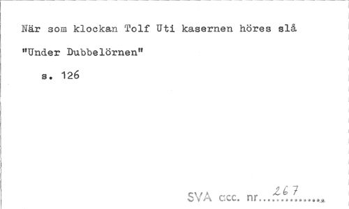 //// När som klockan Tolf Uti kasernen höres slå "Under Dubbelörnen" s. 126 //// SVA ccc. nr.. X. ////