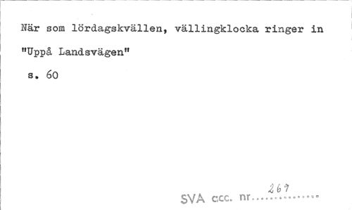 //// Här som lördagskvällen, vällingklocka ringer in "Uppå Landsvägen" s. éO //// ni //// SVA ccc. nr — ////
