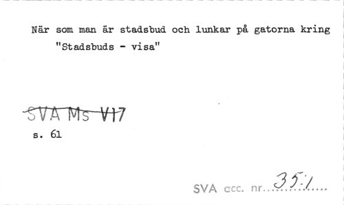 //// När som man är stadsbud och lunkar på gatorna kring "Stadsbuds - visa" //// -<¥n%-¥f7 //// s. 6l //// SVA ccc. nr...s?. ////