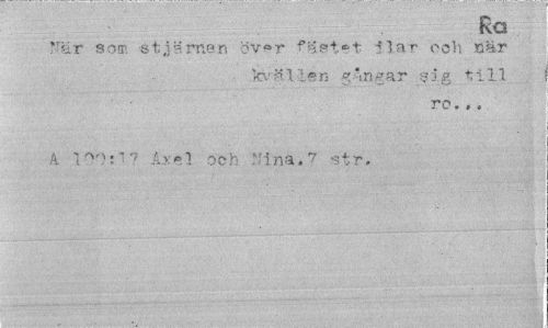 //// Ra //// När som -stjärnan över fästet Ilar och när //// kväll.» n 5ångar sig till //// ro.,, //// A ir>!i? Axel och Nina. 7 >str. ////