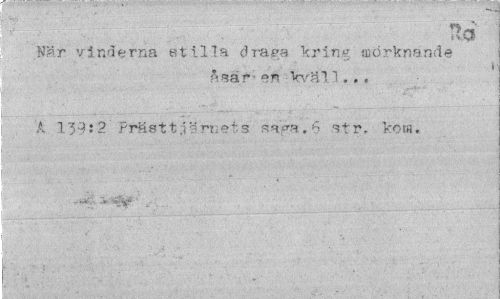//// Ttci //// När vinderna stilla draga kring mörknande //// åsar- en kval 1. . , //// A 139:2 Präst t järnets saga.6 str. kota. ////