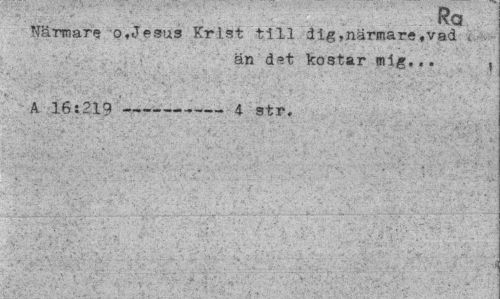 //// Ka //// Närmare o,Jesus Krist till dig,närmare,vad , //// än det kostar mig... , //// A 16:219---4 str. ////