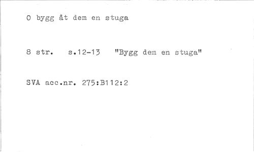 //// O bygg åt dem en stuga //// 8 str. s.12-13 "Bygg dem en stuga" SVA acc.nr. 275:3112:2 ////