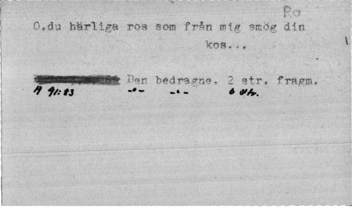 //// G,du härliga ros som frSn mig ^mög din //// kos.,, 1 //// P^n bedragne.» 2 str, fragm» //// j ////