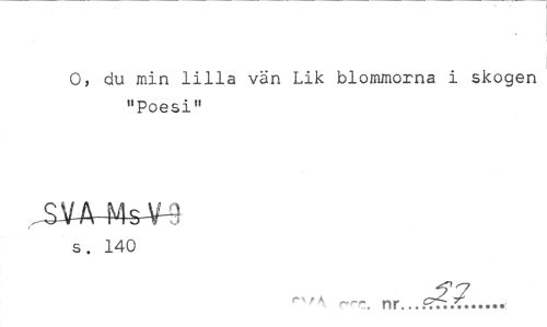 //// O, du min lilla vän Lik blommorna i skogen "Poesi" //// s. 140 //// r\rrr_ nr... 7?... ////