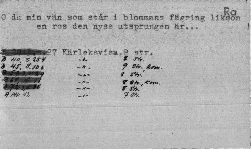 //// Ra //// O da min vän som står i blommans fägring liksom en ros den nyss utsprången är... ! //// Kärleksvis»,8 str, 3 va, s. try -*• * //// 3 - ? //// f *** //// Wfmmmmf r ////