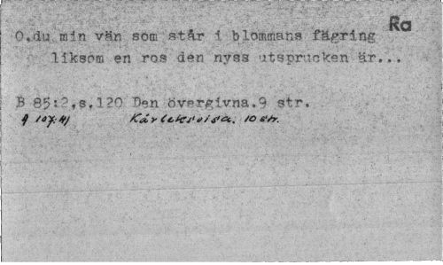 //// ... V--' - ' . - - ' - • 1 - -> 'A //// ¦•;•¦"¦¦ ' ' RCl //// O,du .'.min vän som a-tår i blommans fägring //// liksom en ros den nyss utsprucken är... //// B 85:?»s.l?0 Den övergivna.9 str. //// j SCdr */os-/r. //// ¦ • * . ' ; , / ¦ ¦ / . .¦ ' " - : - ? ////