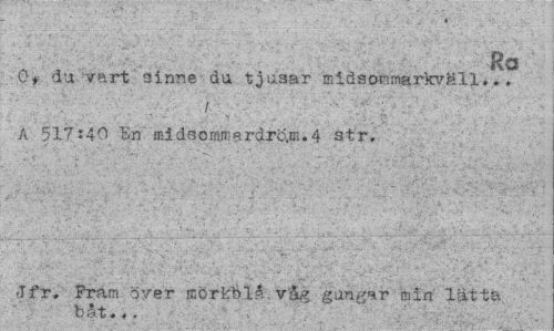 //// 4 //// Ro //// O, du vart sinne du tjusar midsommarkväll... //// -- - " '' * *' ' *T i''" a //// A 517s40 ^n ffiidsommerdrö.m.4 str. //// , ' i ' . ¦ "-. .- '• v" _ . . , ^ * / * >' //// Jfr. Pråm över porkblZ våg gungar min lätta ////
