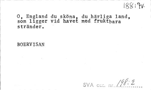 //// mm //// O, England du sköna, du härliga land, som ligger vid havet med fruktbara stränder. //// BOERVISAN //// SVA ccc. nr./fél. ////