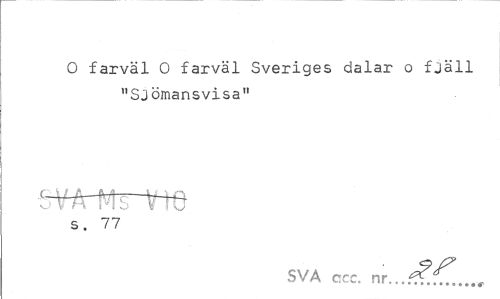 //// O farväl O farväl Sveriges dalar o fjäll "Sjömansvisa" //// s. 77 //// SVÅ ccc. nr...^^... ////