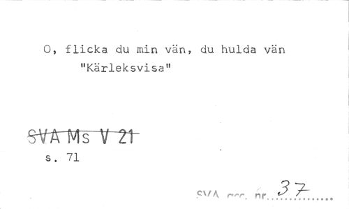 //// O, flicka du min vän, du hulda vän "Kärleksvisa" //// SWMslflt- //// s. 71 //// cva r"v\ nr. ////