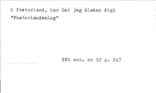 //// O fosterland, hur ömt jag älskar digi "Posterlandssång" //// SVA acc. nr 52 p. 247 ////